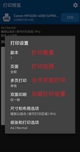许多打印选项(包括份数,分页,页面范围,纸张尺寸,纸张类型,纸盒,输出质量等)