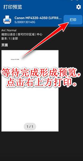 7.等待完成形成预览,点击右上方打印。