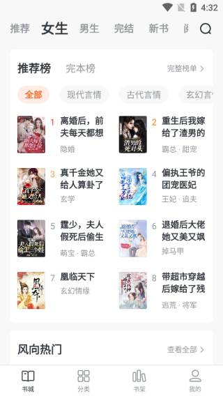 3、【内容齐全】:玄幻、都市、言情、武侠、科幻、军事、职场励志,应有尽有;