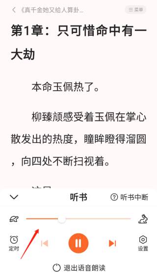 1、找到一本想要听书的小说,如“真千金她又给人算卦了”