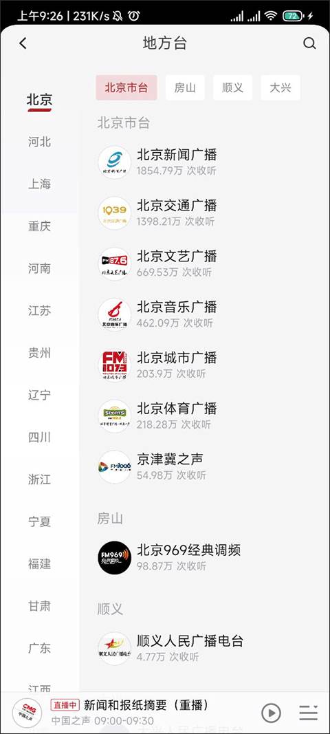 在这个广播界面界面找一自己想听的电台就可以了。