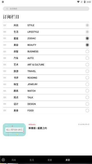 精选栏目:国际新闻、时尚资讯、生活方式,三个主要栏目涵盖全球潮流生活方方面面