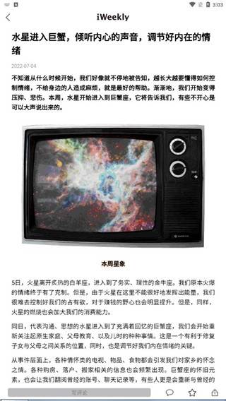 这是一款手机杂志软件,在手机上可以通过它查看到各个行业以及各个方面的最新的资讯,给你提供iWeekly专属的特色,每日奉上环球视野、独家故事、智趣观点和名家专栏。如果你想了解世界,了解世界潮流的话,那么这款app非常适合你。