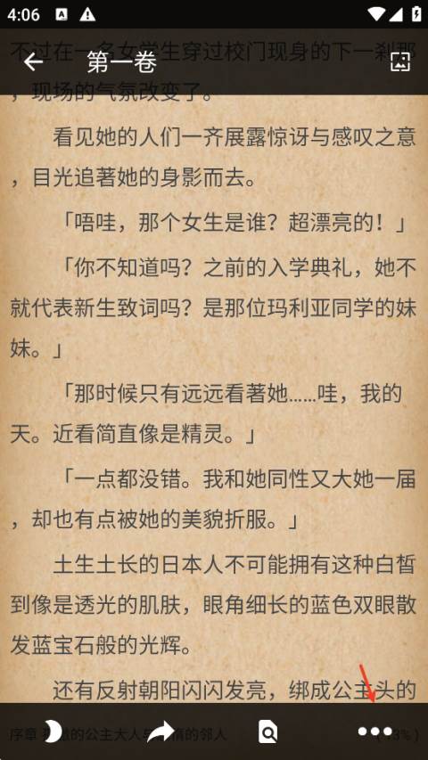 2、在阅读界面点击屏幕,再点击右下角的三个点。