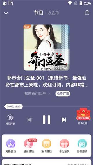 收听赚金币!金币快速提现!消遣领钱两不误,听得越多赚得越多!