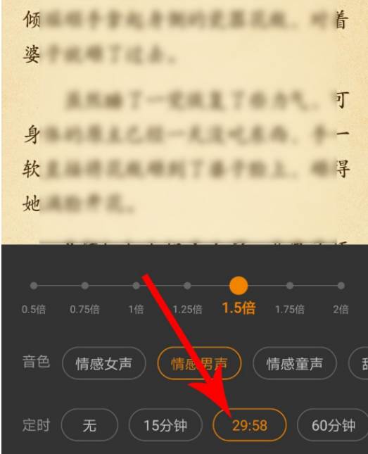 打开听书设置界面点击“1.5倍”以后,系统开始以1.5倍的语速播放语音。
