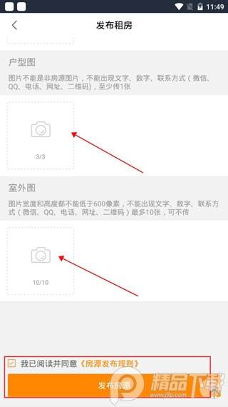 5、点击照相机标志苦熬苏上传室内图、户型图、实勘图,上传完成后勾选房源发布规则点击发布房源就可以了。