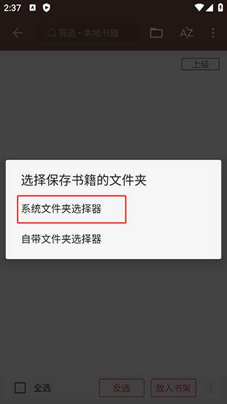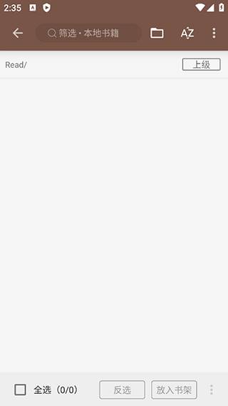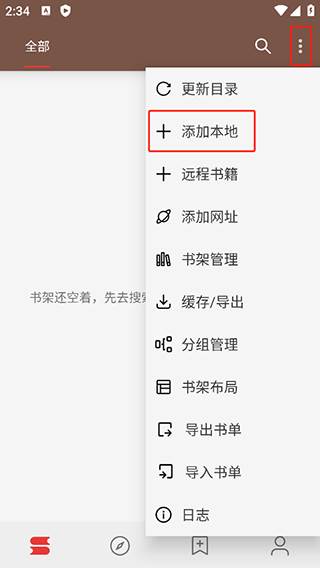 1、书架界面最右上角三个点 ⋮ 图标,然后点击添加本地。