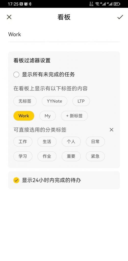 6、在设置待办看板的过滤规则时,会出现一个特殊的标签“无标签”,选中后表示会显示所有没有任何标签的内容。