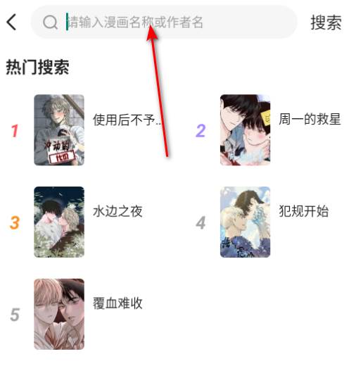 点击上方搜索,输入关键字就可以找到喜欢的漫画