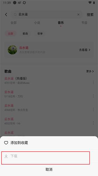 3、然后找到自己想下载的歌曲版本,点击右边的三个点,之后就可以点击下载歌曲了。