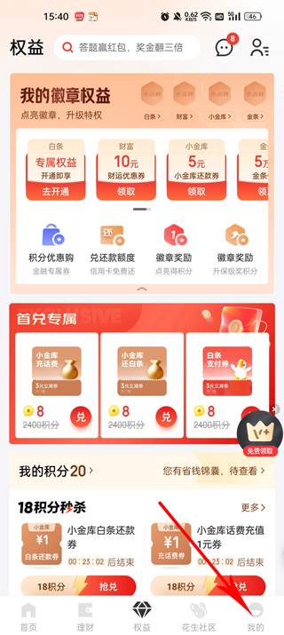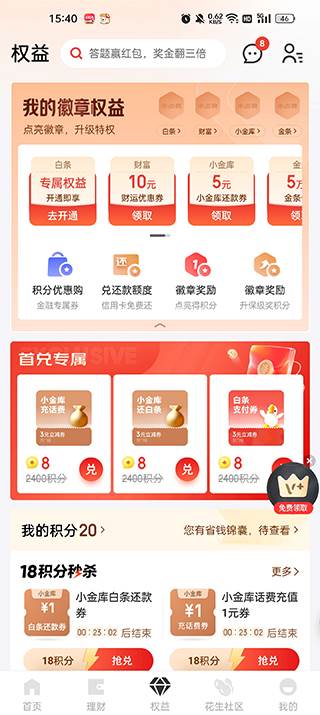 各种专属权益、积分优惠购以及各种优惠券领取。