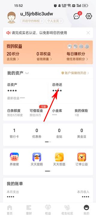 个人资产管理,以及账单明细都可以在这里查看。
