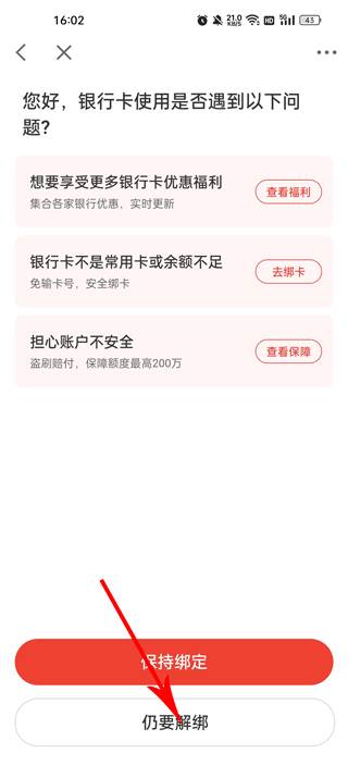 4、然后点击下方的我要解绑银行卡,点击进入解绑页面;