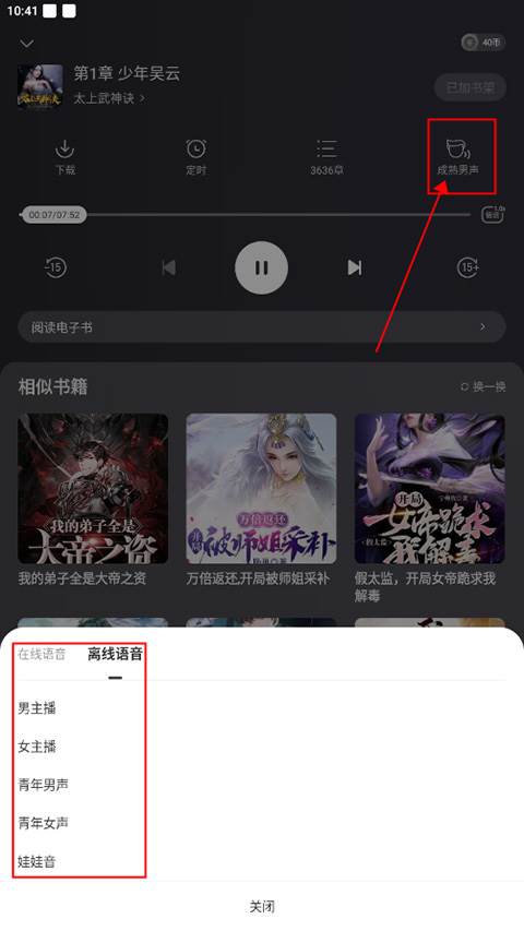 2. 提供了细腻的人声朗读功能,随时随地听小说。