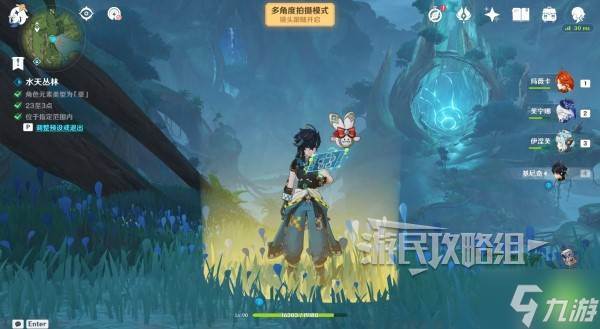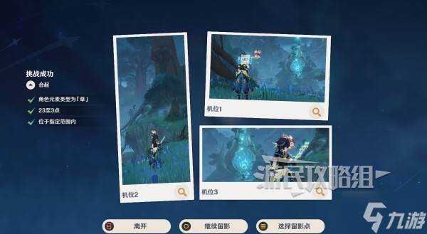 将游戏内时间调整至23至3点,切换出一名草元素角色,与留影点互动,根据喜好进行调整,然后可以在界面左侧查看是否符合留影要求。