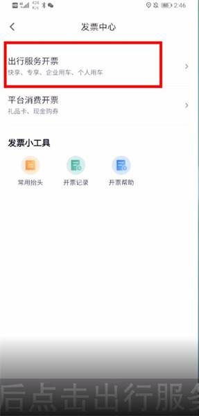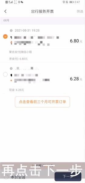 4、随后点击出行服务开票,勾选订单,再点击下一步;