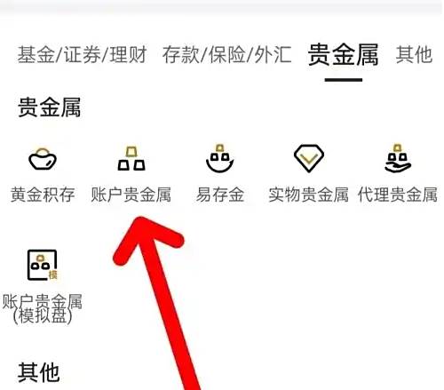 然后,在财富服务页面点击账户贵金属服务