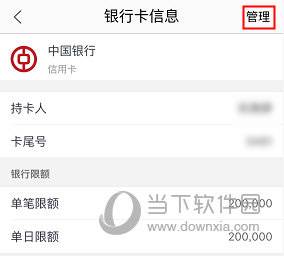 5、在“银行卡信息”界面中,点击右上角的“管理”;