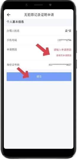 点击输入申请原因(入职,出国等)-点击提交-等待申请结果。