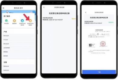 已提交申请的用户可于三日内在【无犯罪记录证明查询】中查看审核结果,通过后点击下载即可获取电子版证明。