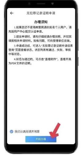进入办理页面-阅读并勾选办理须知-点击开始办理。