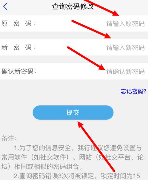 输入 原密码 以及 新密码 ,再点击 提交 。