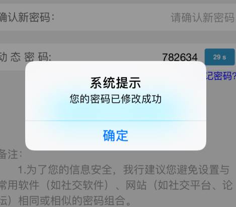 将手机上到的动态密码码输入,最后点击 确定 。