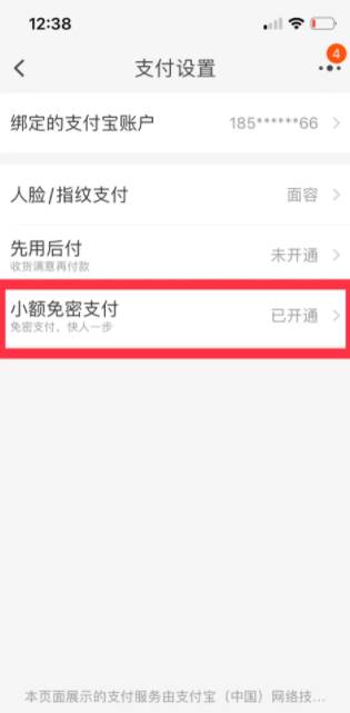 点击“小额免密支付”
