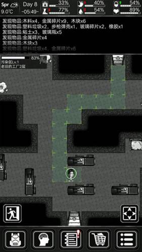 状态栏:记录你的身体状态、温度变化、发现的道具、战斗结果及人物的动作。六维过低时会有不同的提示。