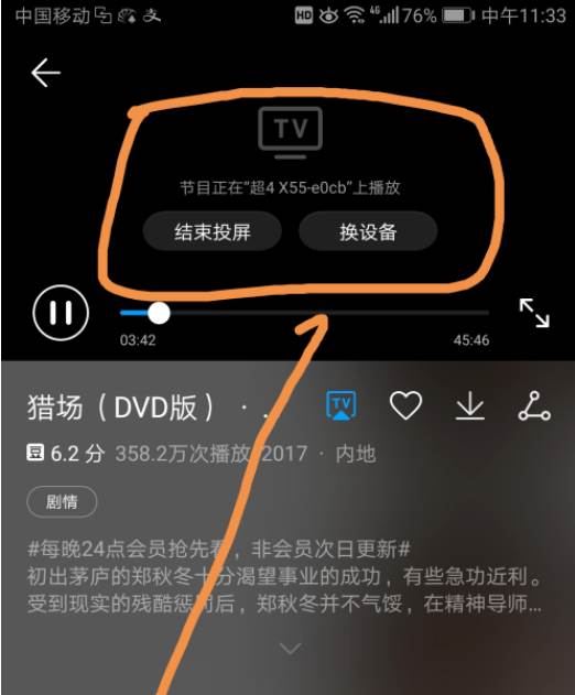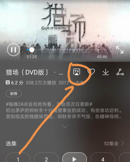 6.进入播放界面之后,点按箭头指向的tv标志。