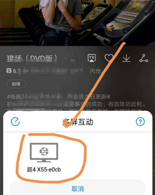 8.当多屏互动搜索到电视机的名称之后,点按该名称,如下图所示。