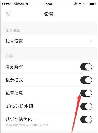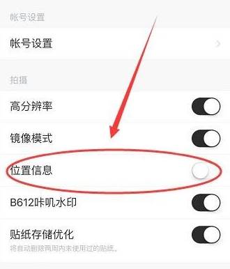 点击设置,进入到B612咔叽相机的设置页面,在这里可以看到 位置信息 设置项