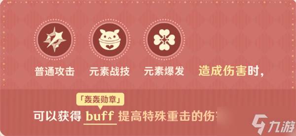 3、普通攻击、元素战技、元素爆发造成伤害时,可以获得buff提高特殊重击的伤害。