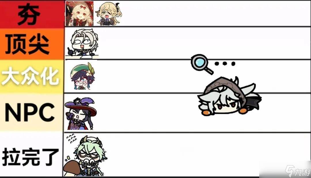 也可以和可莉排在t0的位置,作为雷系后台的菲谢尔本身就很泛用,和杜林或者可莉也随便就能组超载队,满命开E技能直接给前台提升45%的攻击力,加上本来就有的后台能力,而且这角色也基本人手一个,含金量自然不用多说。