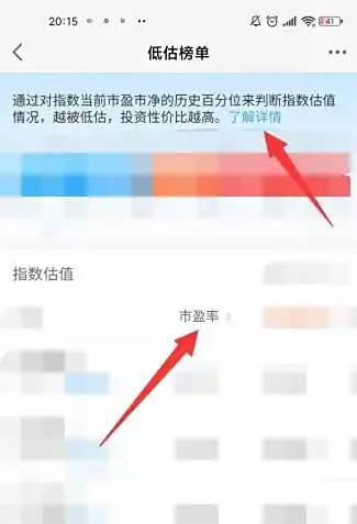在低估榜单中可以看到市盈率,点击上方的【了解详情】。