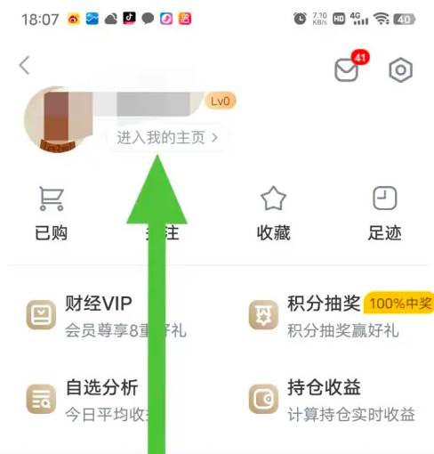 进入新浪财经首页后,点击左上角的头像头像进入;