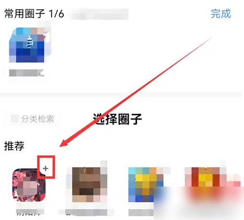 进入页面,选择想要添加的圈子右上角的加号符号,即可成功添加