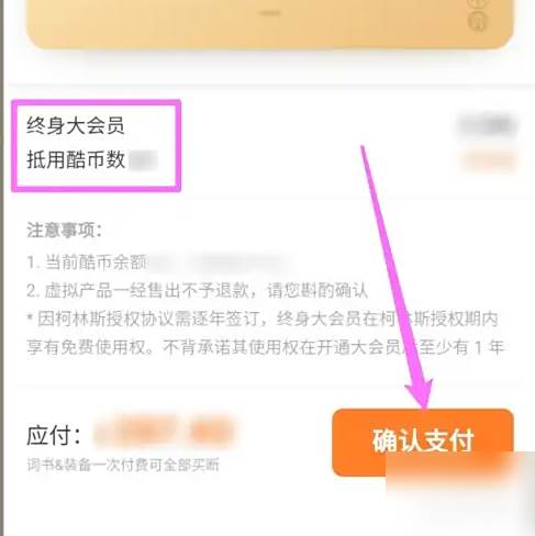 这时候可以使用酷币进行抵扣,点击确认支付即可使用酷币兑换会员。