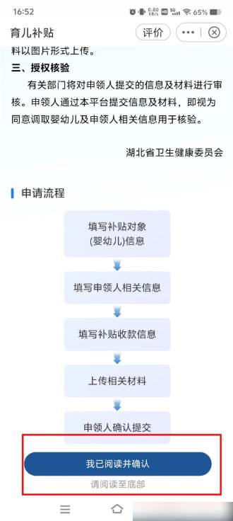 ③点击“我已阅读并确认”按钮,完成阅读“办理须知”并确认,即可进入下一步。