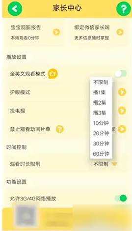 往下滑,找到时间控制,点击观看时长限制,选择要设置的观看时间,点击确定即可。
