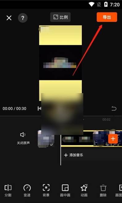 5、最后编辑成功后,点击右上角的【导出】导出编辑好的视频,将其保存在手机中。