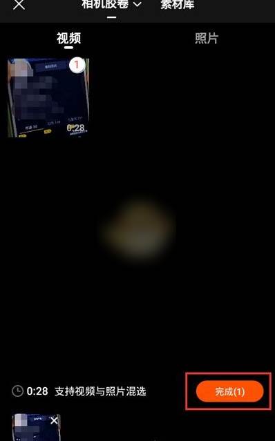 3、然后导入我们拍摄好的视频,或者图片等等,选择好之后点击【完成】;
