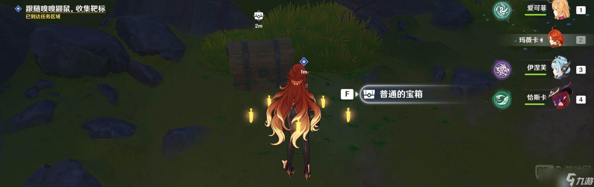 跟随嗅嗅鼹鼠,收集第一个靶标后,第二个处出现宝箱3:普通的宝箱。