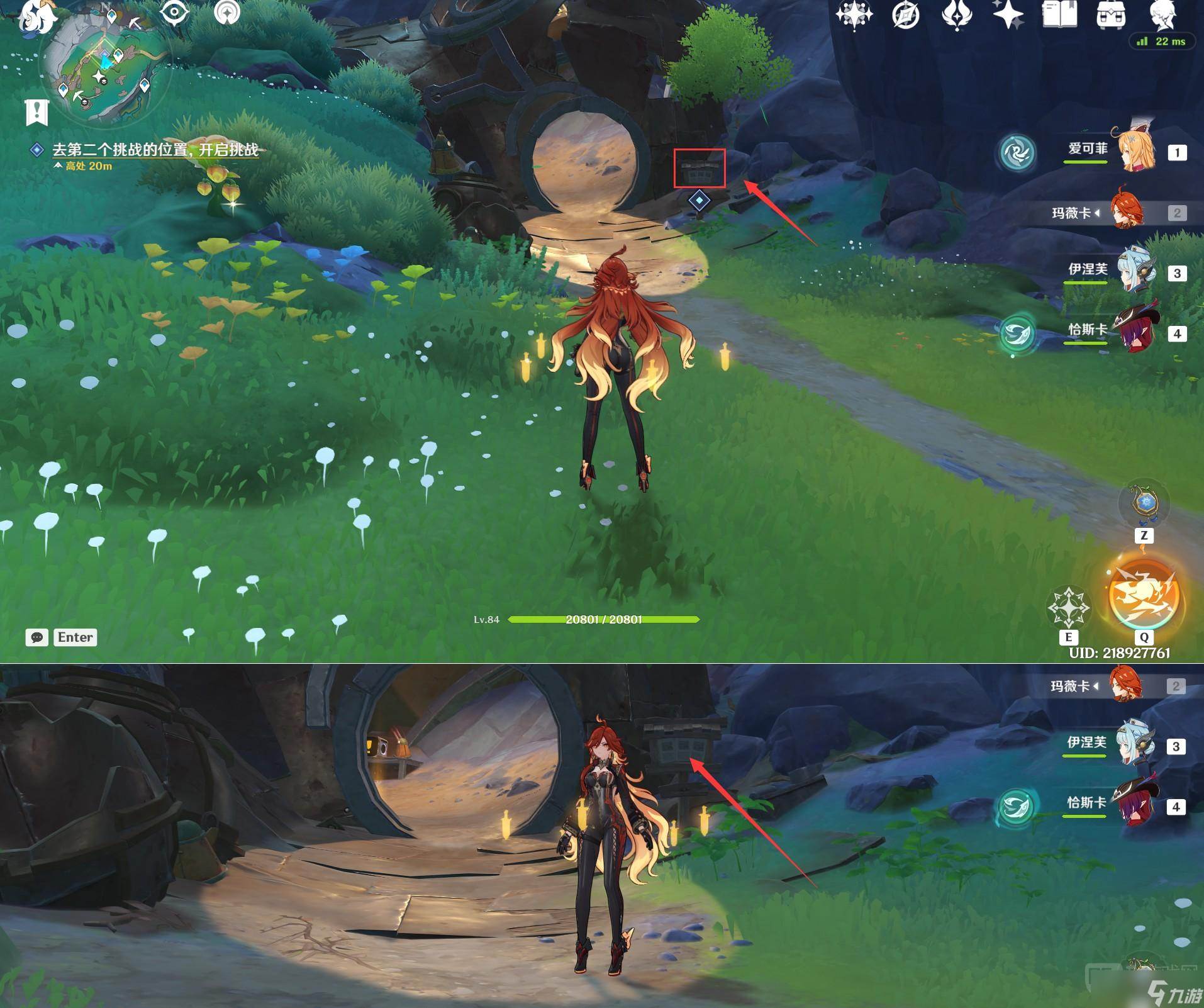 跟随指引来到任务地点,与光柱交互,开启挑战。