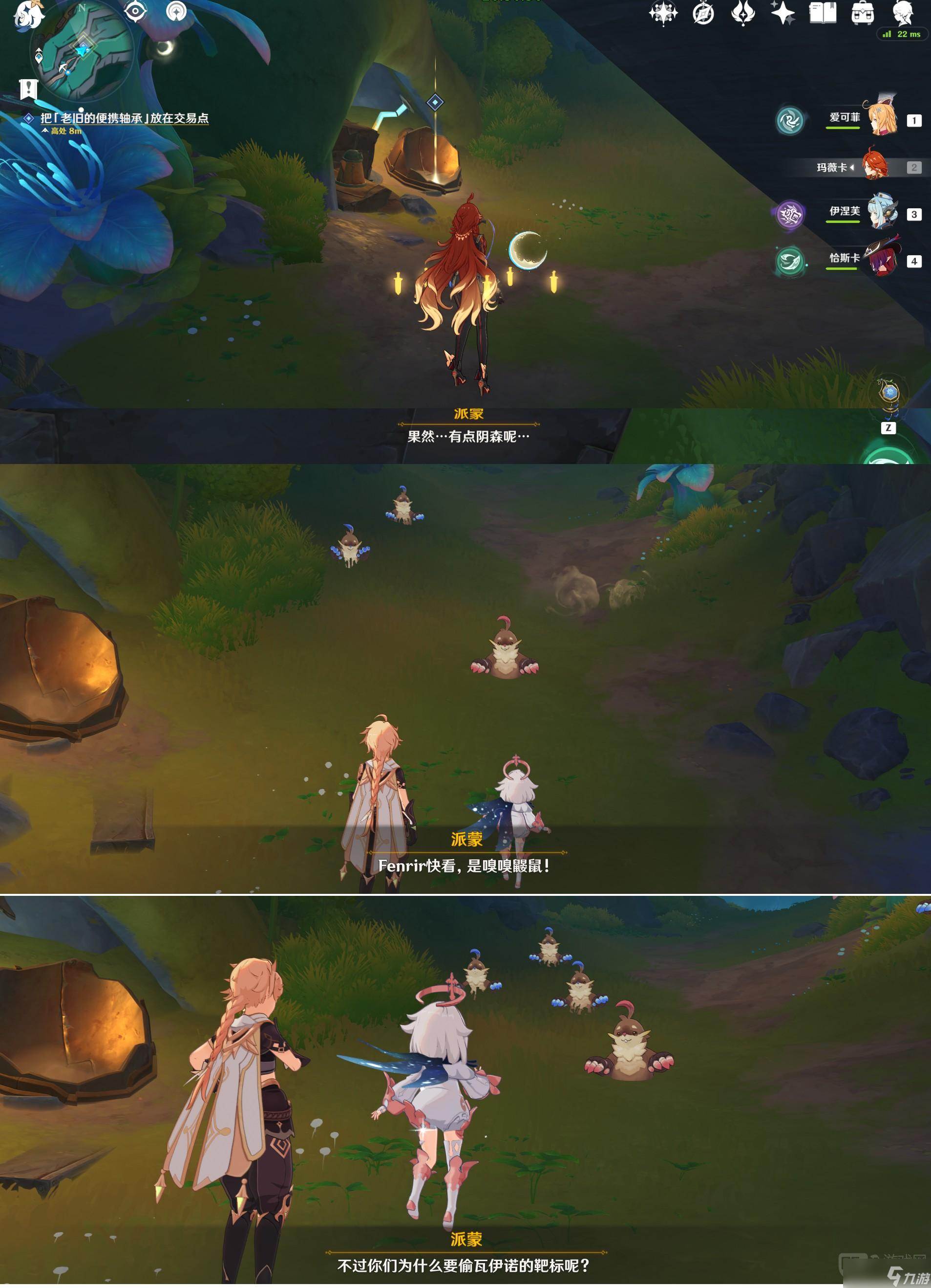 拾取靶标之后,鼹鼠会带着主角去刚才几处非任务宝箱和神瞳处。